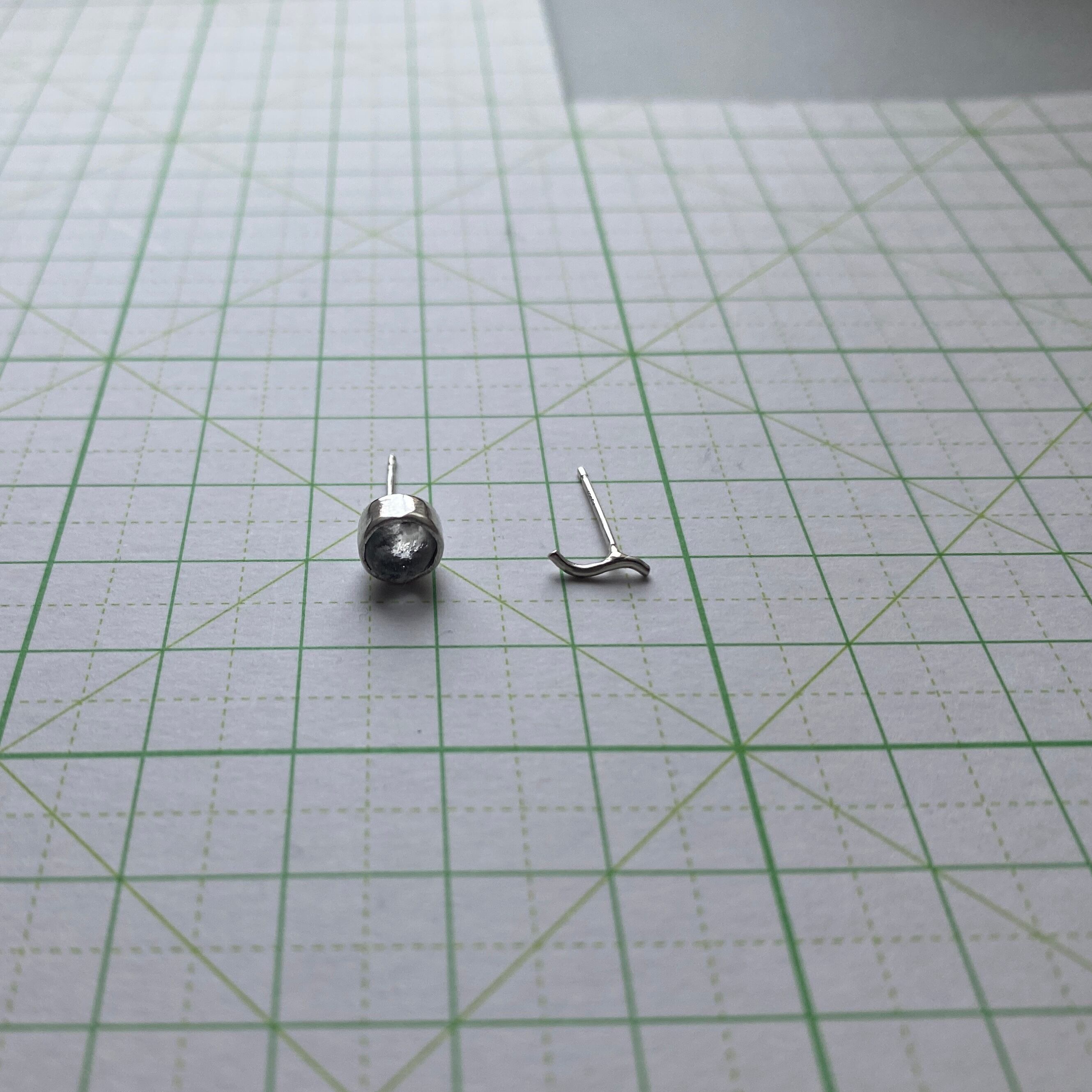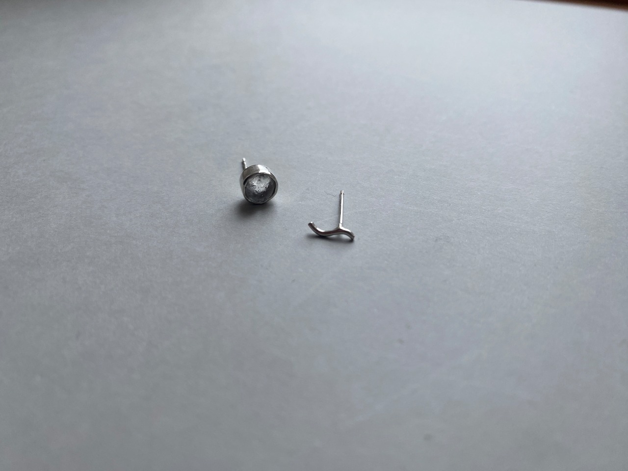 シルバーは柔らかい金属ですので、力が加わると歪曲してしまったり折れたりすることがあります。着脱の際は無理な力を加えず取り扱ってください。破損した場合の修理・リメイクは石の状態を見て判断いたしますのでお問い合わせください。
