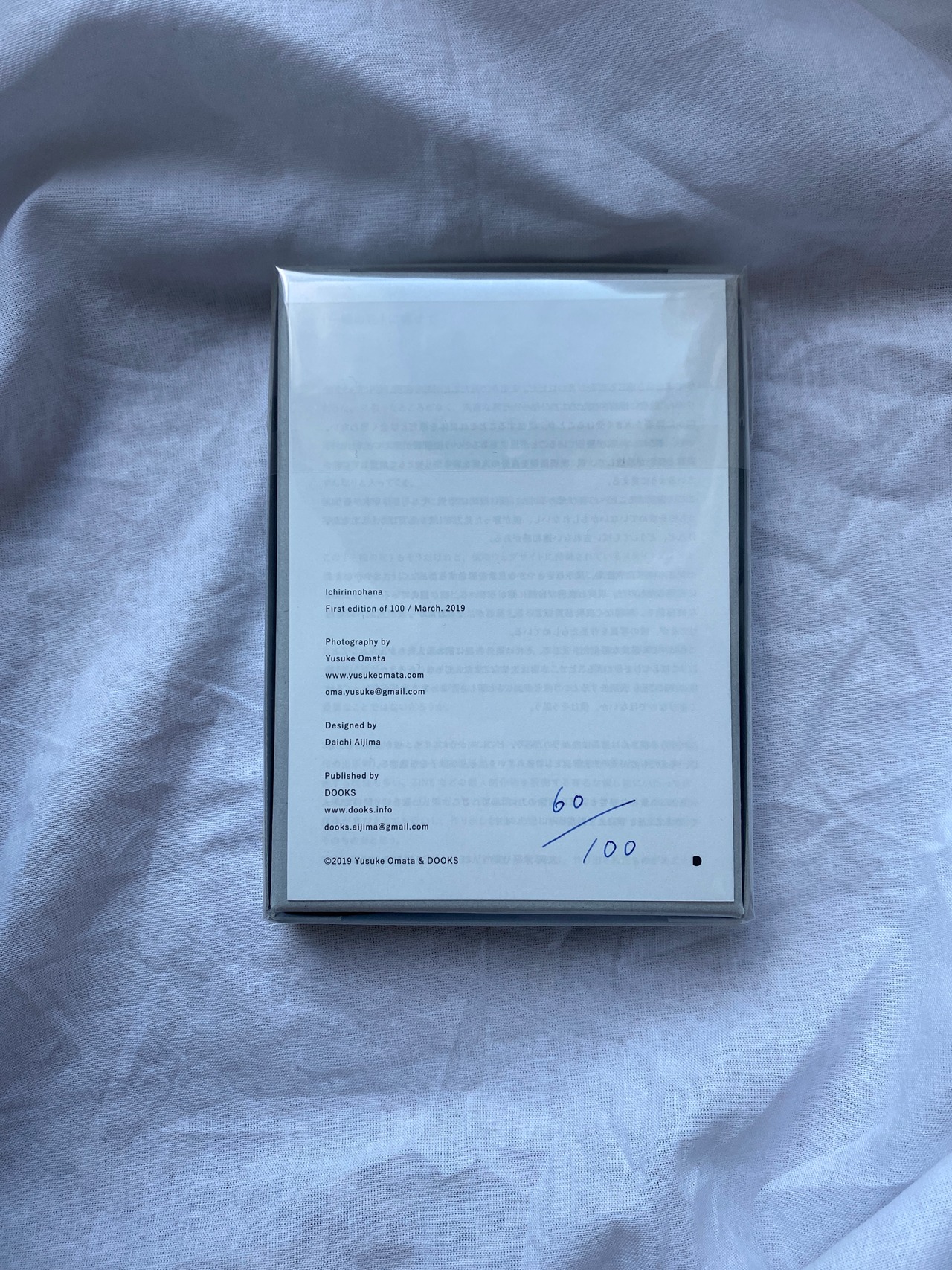 亡くなった母に捧げるように花を飾り、撮影してきた写真をまとめた「一輪の花」。4年前に制作したものから内容を新たに、第2段を限定100部で制作しました。BOXにはポストカード、メッセージが綴られたポスター、友岡洋平さん(EETY / EE HANDCRAFTED PRODUCTS)に寄稿していただいたテキストが同封されています。